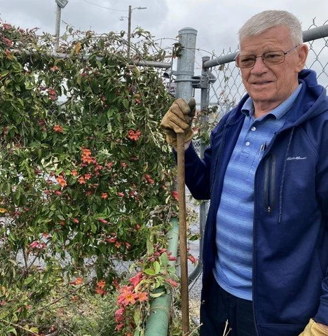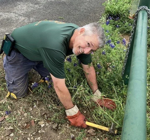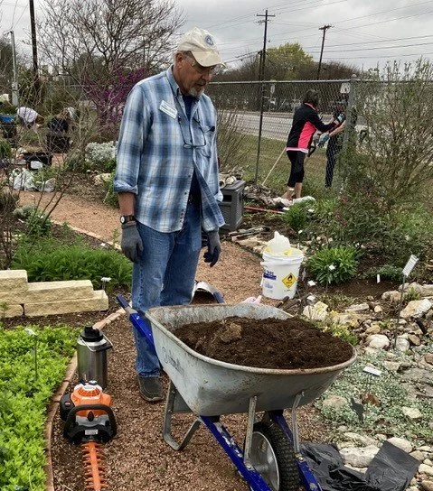 Hill Country Master Gardeners getting the Demo Garden ready for Spring 2024. We love the bluebonnets this year and so does Tobi the Pup!